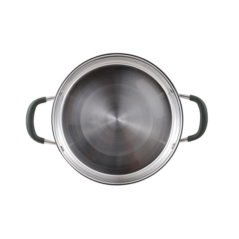 Velký nerezový hrnec s poklicí o objemu 9,5 l vhodný na indukční, plynové i elektrické sporáky, snadno se udržuje a nabízí bezpečné silikonové rukojeti. Zobrazit celý popis