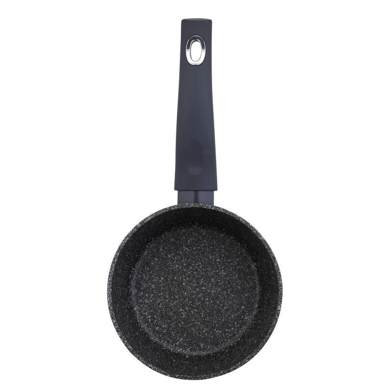 Pánev bez pokličky patřící do kolekce Orion značky Bergner. Jeho velikost, 16 cm v průměru a 7,5 cm na výšku, a jeho objem 1,6 l z něj dělají ideální pro přípravu jakéhokoli typu individuálních receptů nebo pro dvě osoby a překvapí vaši rodinu a přátele širokou nabídkou jídel. Hrnec je vyroben z kovaného hliníku, vysoce kvalitního a odolného materiálu, který umožňuje rychlé a rovnoměrné rozložení tepla, zabraňuje vzniku horkých míst a tím šetří velké množství energie. Tento materiál navíc poskytuje kusu velmi dobré vlastnosti lehkosti, udržení tepla při vysokých teplotách a odolnosti vůči rizikům koroze, nárazům a poškrábání. Hrnec má nepřilnavou vnitřní vrstvu Marble+, která zajišťuje rovnoměrnější efekt uvolňování potravin, zabraňuje přilnutí jídla k povrchu a usnadňuje čištění. Tento povlak je navíc extrémně odolný a odolný proti poškrábání. Hrnec má bodovou indukční základnu, díky které je vhodný pro všechny typy sporáků: sklokeramické, elektrické, halogenové, plynové a indukční. Design hrnce v šedé barvě s bílými puntíky se skvěle hodí do každého typu kuchyně. Navíc má ergonomickou rukojeť s texturou hadí kůže a povrchovou úpravou soft touch, která pozvedne váš způsob vaření a zároveň vás ochrání před popálením při manipulaci s kusem. Díky všem těmto vlastnostem je ideální pro všechny kuchaře, od začátečníků až po ty nejzkušenější. Pro prodloužení životnosti výrobku se doporučuje ruční mytí.