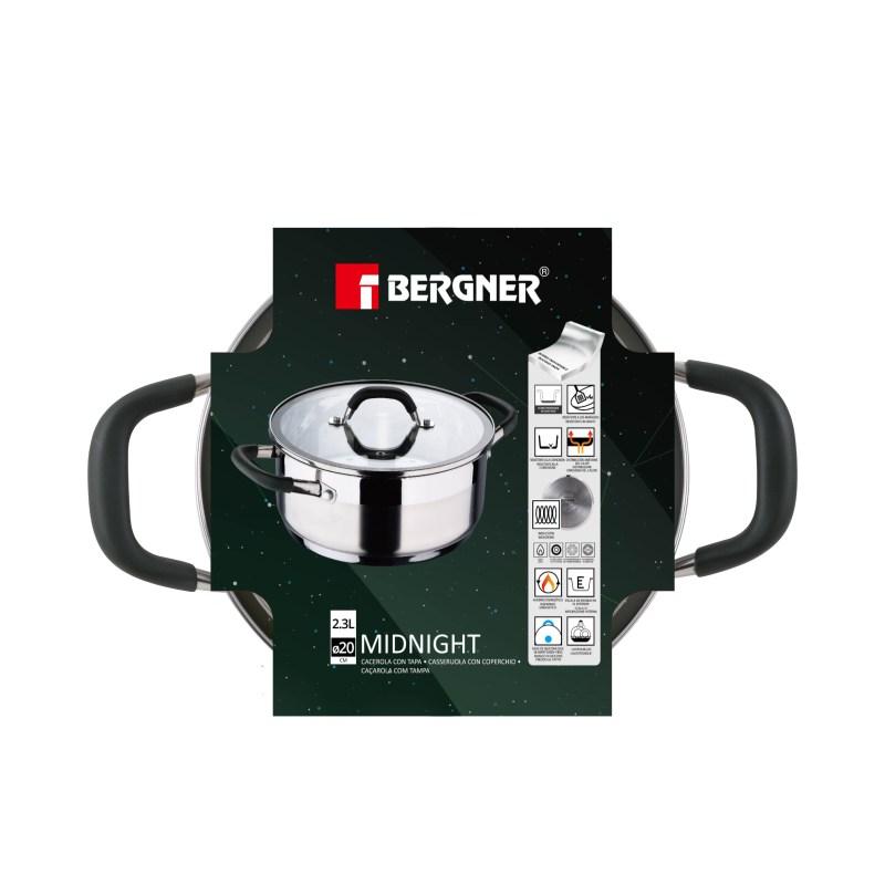 Bergner Kastrol s poklicí nerez MIDNIGHT 20 cm 2,3 litru