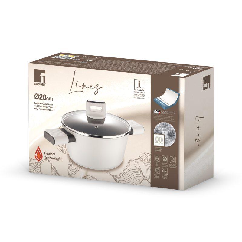 Bergner Kastrol s poklicí s nepřilnavým povrchem LINES 20 cm šedobílá