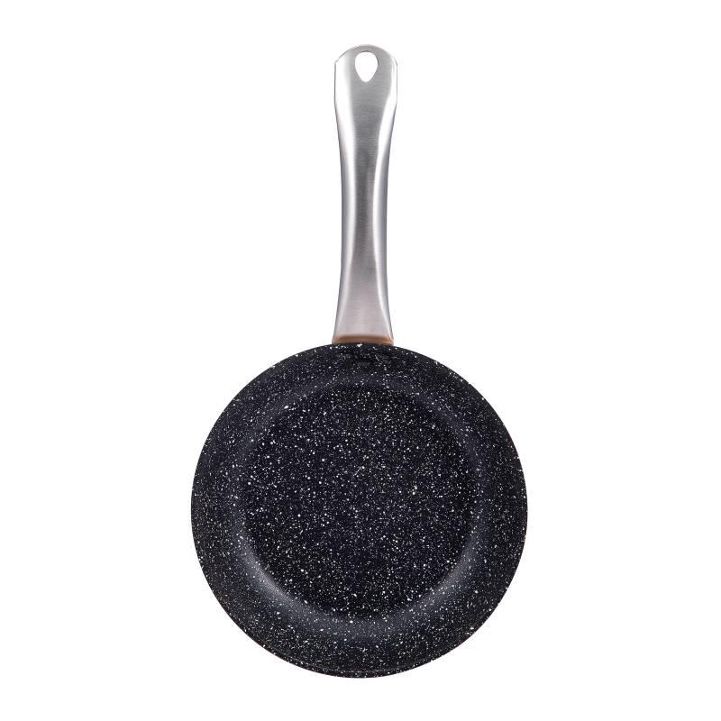 Pánev z kovaného hliníku s mramorovým nepřilnavým povrchem a rukojetí z nerezové oceli je vhodná pro indukční i klasické sporáky.Tato pánev představuje spojení elegance a funkčnosti, které zpříjemní každodenní vaření a přinese do kuchyně stylový doplněk. Díky kvalitnímu kovanému hliníku se ohřívá rychle a rovnoměrně, což zajišťuje lepší výsledky při přípravě jídel.