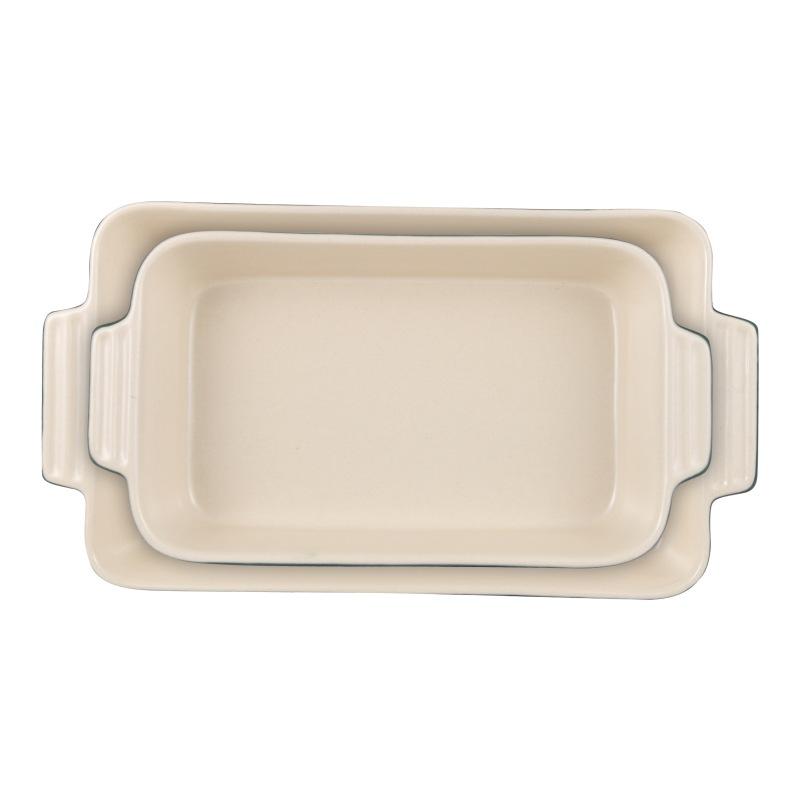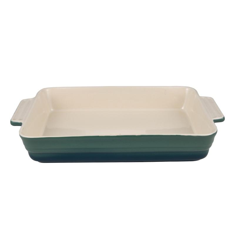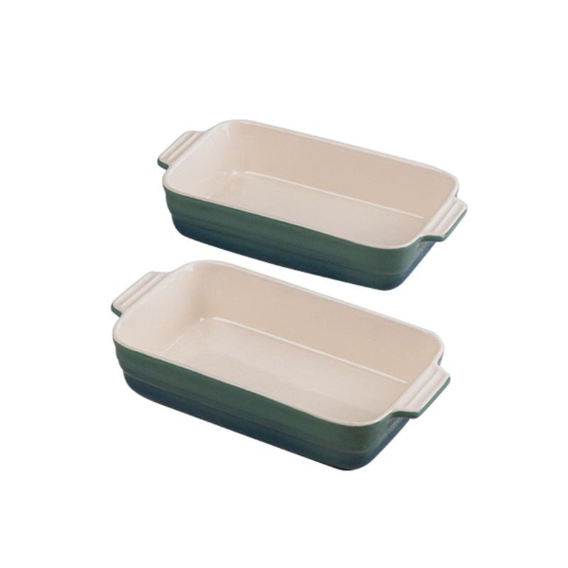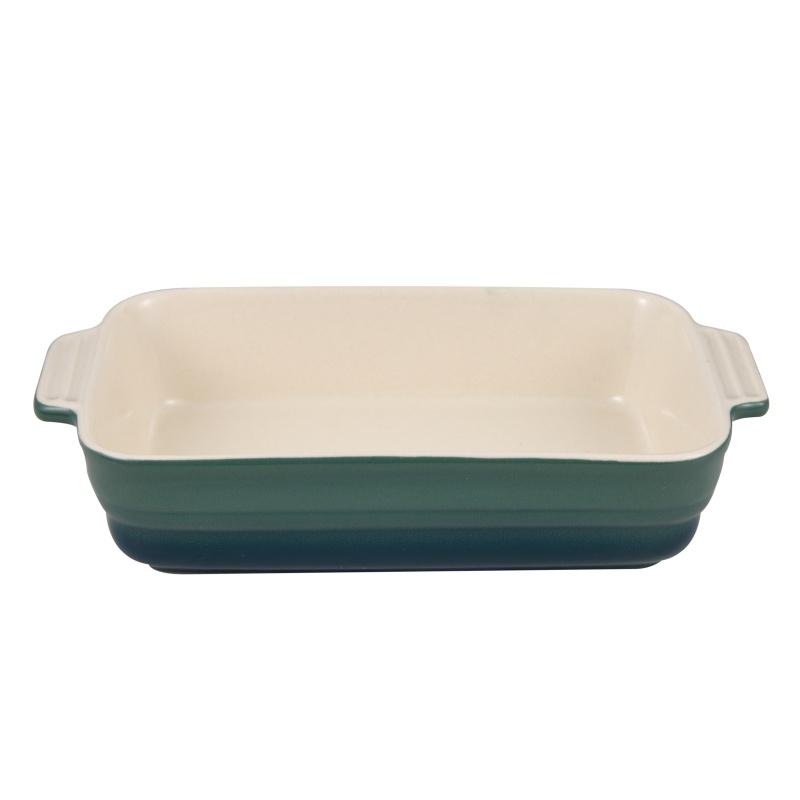 • Sada 2 obdélníkových forem na pečení: 1 forma o rozměrech 31 x 19 x 5,2 cm a jedna forma o rozměrech 37 x 21 x 7 cm. • Vyrobeno z vysoce odolné kameniny. • Interiér v krémové barvě. • Exteriér v odstínech zelené. • Stohovatelný výrobek. • Vhodné do trouby, mikrovlnné trouby, lednice a myčky.Excalibur přináší do vaší kuchyně efektivní a sofistikované kuchyňské nádobí s barevným nádechem. Sada 2 obdélníkových pekařů o rozměrech 31 x 19 x 5,2 cm a 37 x 21 x 7 cm, stohovatelná sada, která vyřeší vaše problémy se skladováním. Jsou vyrobeny z vysoce kvalitní kameniny, jsou extrémně odolné a trvanlivé a udržují teplotu, aby nabídly produkt na stole v jeho optimálním bodě a zároveň šetří energii. Vařte v troubě, ohřívejte jídlo v mikrovlnné troubě nebo je uchovávejte v lednici, cokoli potřebujete. Kolekce připomínající staromódní kuchyni s přechodově zeleným designem, s interiérem v krémové barvě, který zdokonalí vaše přípravy a s uchy je můžete podávat, kde si budete přát. Kompletní sada, která se snadno čistí v myčce, takže je můžete použít tolikrát, kolikrát potřebujete.69264276587681295