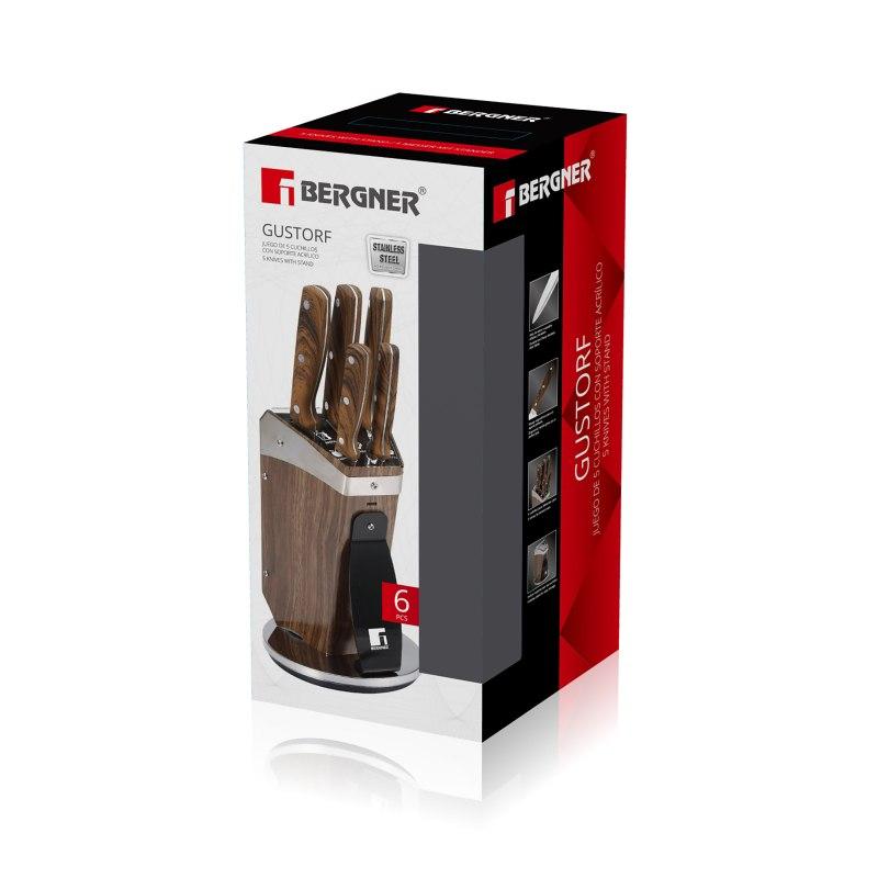 Bergner Sada nožů ve stojanu 6 ks GUSTORF hnědá