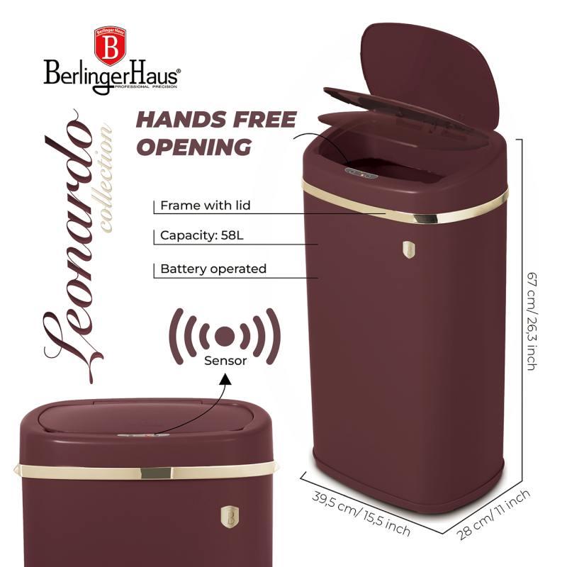 Berlingerhaus Bezdotykový odpadkový koš se senzorem 58 l Leonardo Collection + doprava zdarma