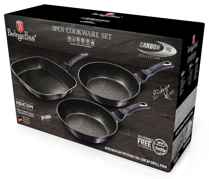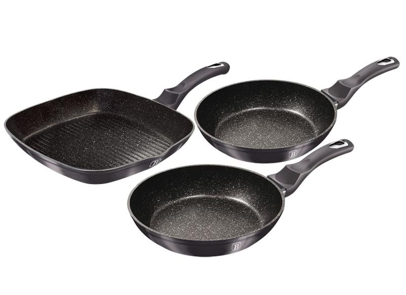 Berlingerhaus BH-6904 Pánev s mramorovým povrchem sada 3 ks Carbon PRO Line