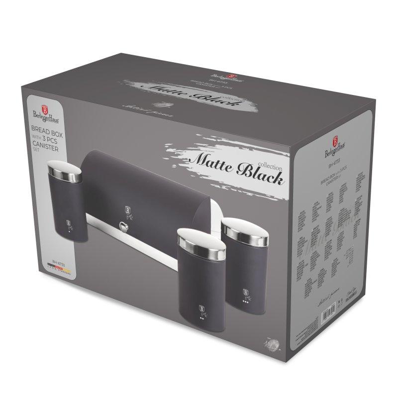 Berlingerhaus Chlebník a sada dóz na potraviny 4 ks Matte Black Collection
