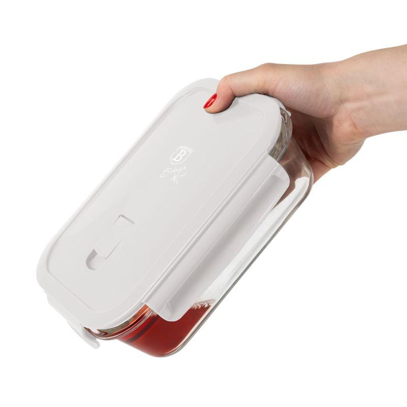 Sada pěti dóz na potraviny z borosilikátového skla nabízí praktické a bezpečné řešení pro skladování různých potravin. Díky vzduchotěsnému uzávěru s víkem, které obsahuje otvor pro odvod páry, jsou nádoby vhodné nejen pro uchování čerstvosti, ale také pro ohřívání v mikrovlnné troubě. Sklo je tepelně odolné až do 400 °C, což zajišťuje dlouhou životnost a odolnost proti poškození při běžném používání. Víka nejsou tepelně odolná do tak vysokých teplot, je tedy potřeba s nimi zacházet opatrně.