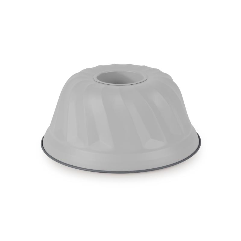 Forma má průměr 25 cm a výšku 10,5 cm, což odpovídá klasické velikosti domácí bábovky. Matná šedá barva dodává výrobku decentní a moderní vzhled, který se hodí do každé kuchyně.