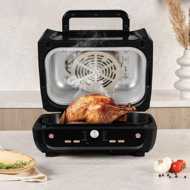 Zažijte revoluci ve vaření s horkovzdušnou multifunkční troubou 12 v 1 Black Rose Collection. Toto stylové a výkonné zařízení kombinuje funkce několika spotřebičů v jednom a přináší tak maximální pohodlí při každodenní přípravě jídel.