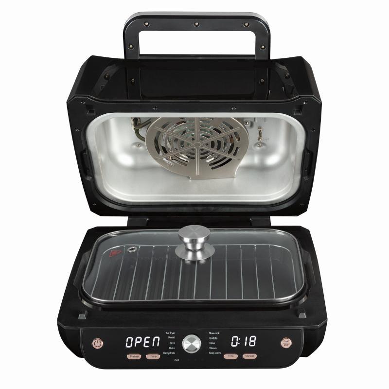 • 12 funkcí v jednom zařízení: fritéza, klasické a horkovzdušné pečení, grilování, sušení, dušení, pomalé vaření, vaření v páře, udržování teploty a manuální režim – díky nim zvládnete širokou škálu receptů