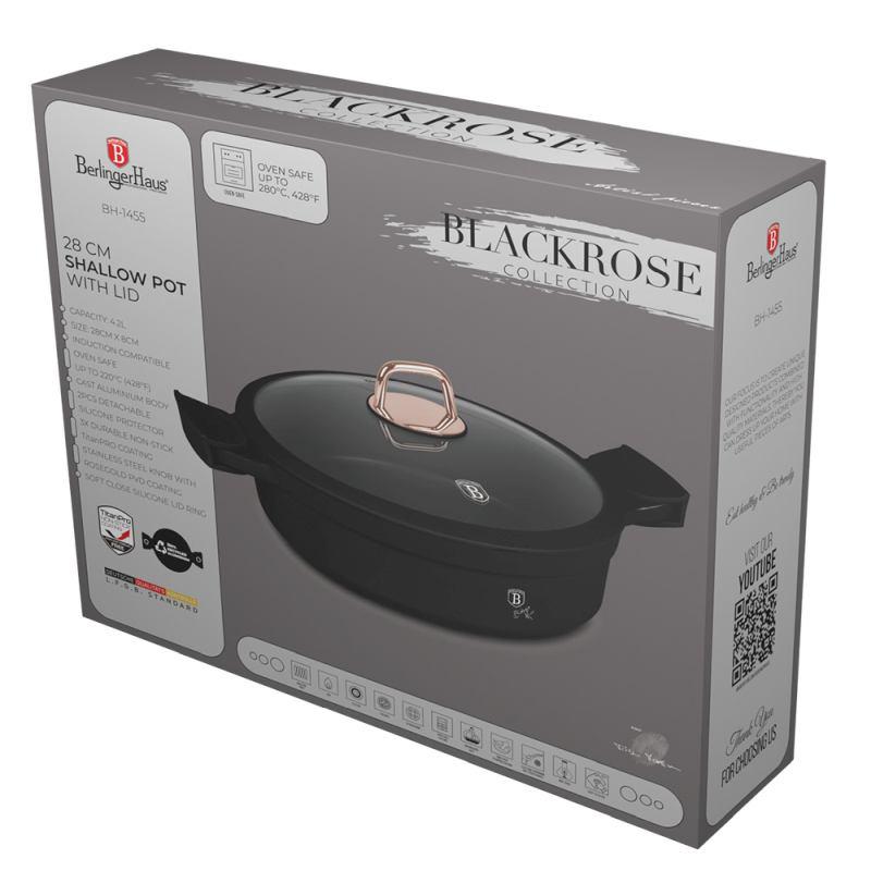 Berlingerhaus Kastrol s titanovým povrchem a poklicí 28 cm Black Rose Collection