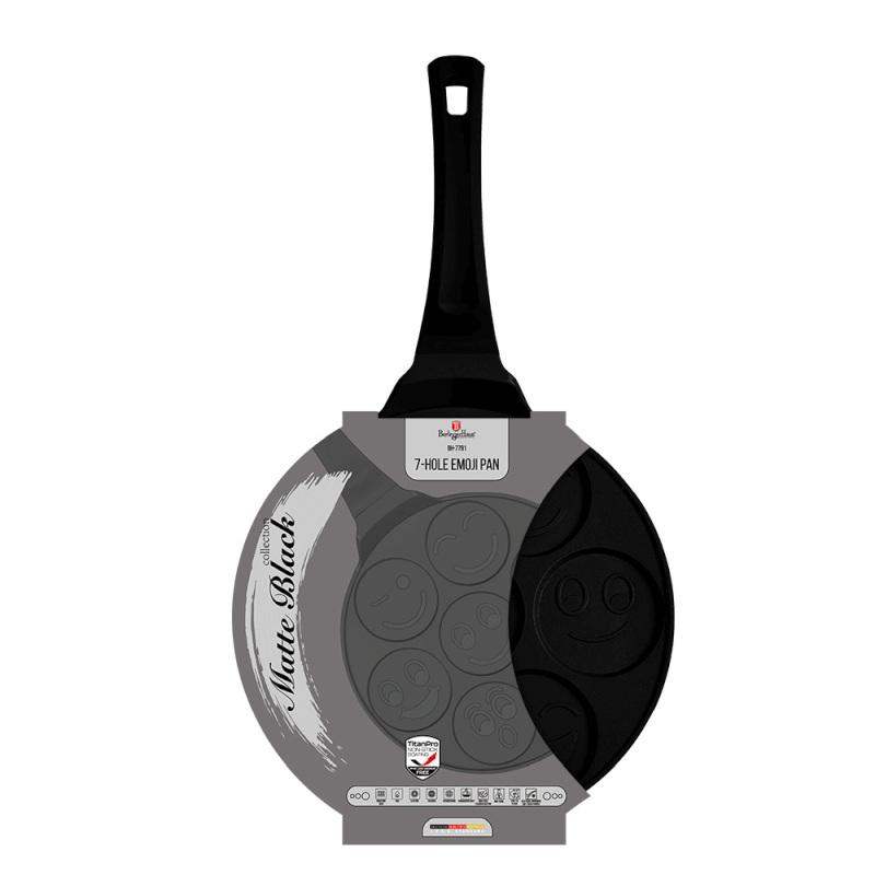 Tato stylová pánev na palačinky ze série Matte Black Collection nabízí 7 zábavných emoji tvarů, které zpestří každou snídani i vaření s dětmi. Díky vysoce kvalitnímu titanovému nepřilnavému povrchu a litinovému hliníkovému tělu dochází k rovnoměrnému rozložení tepla, což pomáhá připravit palačinky bez přichycení a s minimálním množstvím tuku.