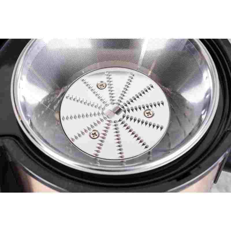 Bezpečnostní systém zajišťuje spolehlivý provoz a rychlou manipulaci. Odšťavňovač je vybaven průhledným víkem, díky kterému máte přehled o průběhu odšťavňování. Díky snadné demontáži a možnosti mytí v myčce je údržba jednoduchá a rychlá, což šetří čas a usnadňuje každodenní používání.
