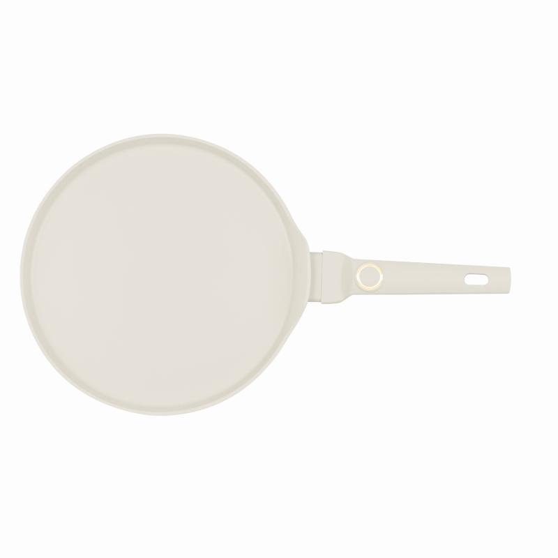 Palačinková pánev s 3vrstvým titanovým nepřilnavým povrchem a ergonomickou rukojetí, vhodná na všechny typy sporáků včetně indukce, snadno se čistí v myčce.Tato palačinková pánev nabízí kombinaci odolnosti a pohodlí při vaření díky kovanému hliníku s titanovým nepřilnavým povrchem. Povrch je tvořen třemi vrstvami titanové ochrany, což zajišťuje dlouhou životnost a snadnou údržbu. Písková matná barva dodává pánvi elegantní vzhled, který skvěle zapadne do moderní kuchyně.