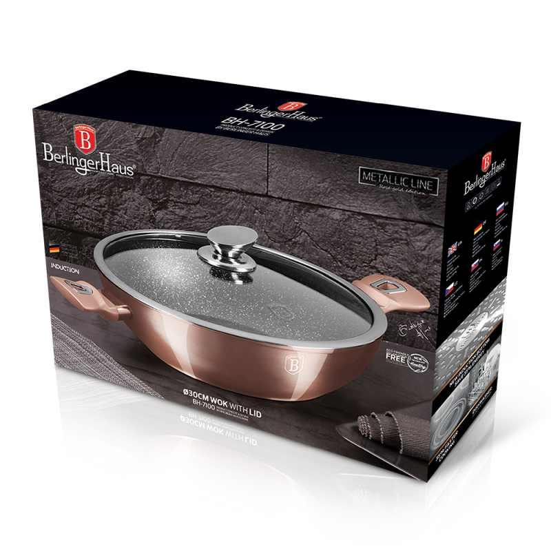 Berlingerhaus Pánev WOK s mramorovým povrchem 30 cm Rosegold Metallic Line