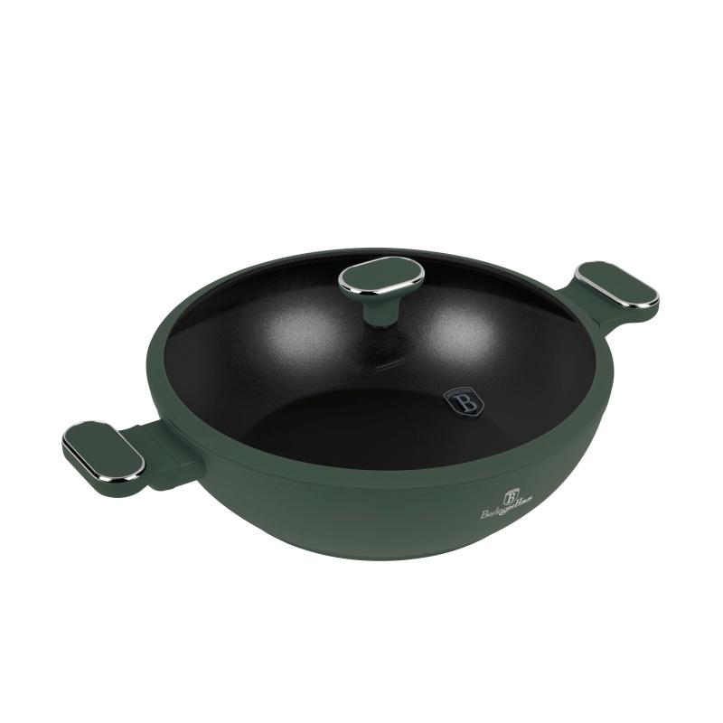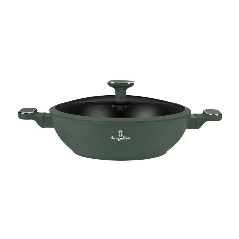 Berlingerhaus Pánev wok s poklicí a titanovým povrchem 30 cm Matte Green Collection