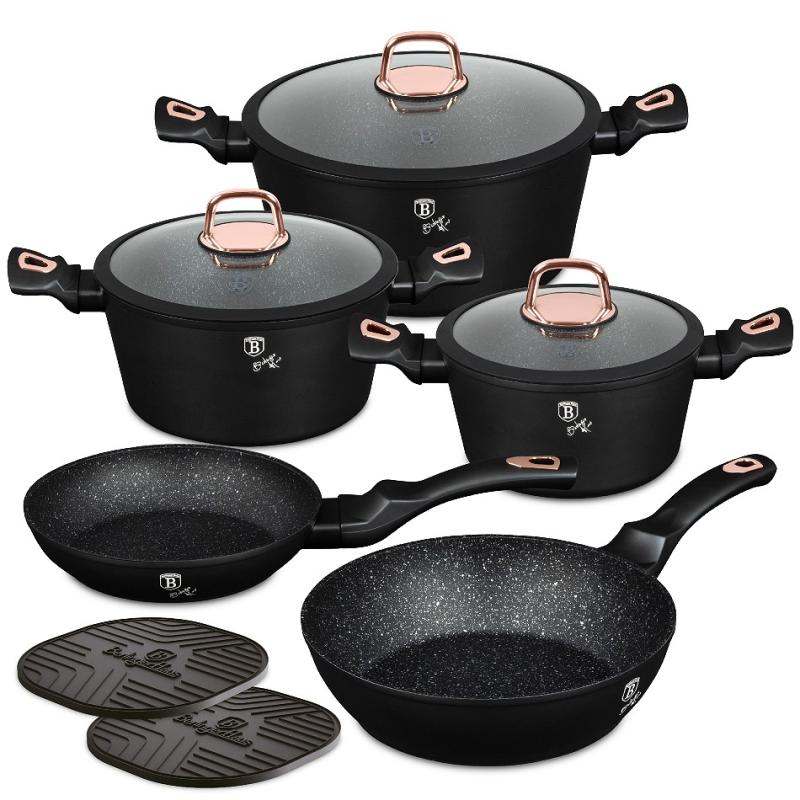 Berlingerhaus Sada nádobí s mramorovým povrchem 10 ks Black Rose Collection + doprava zdarma