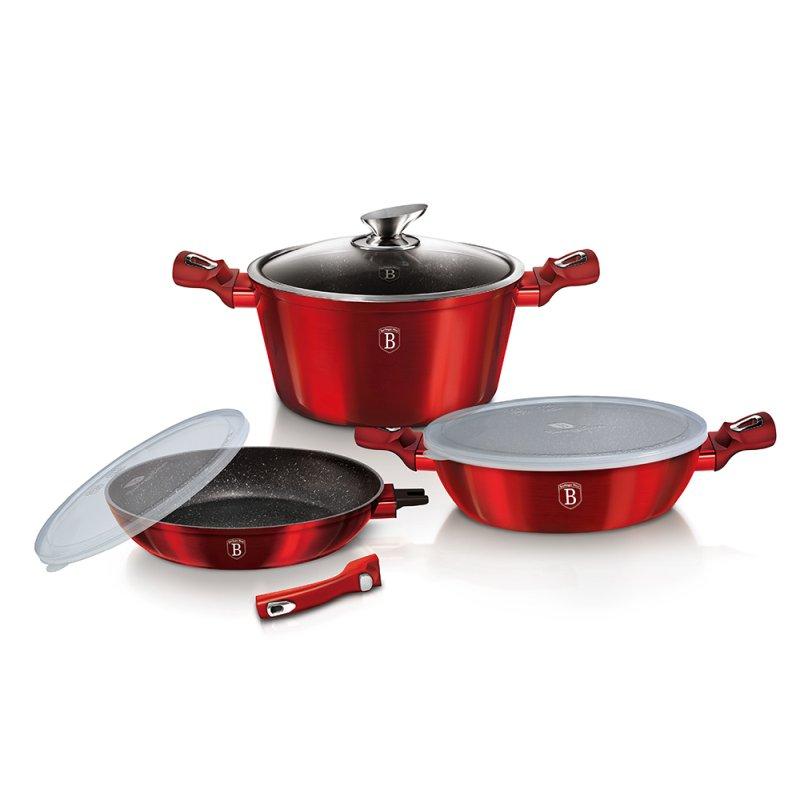 Berlingerhaus Sada nádobí s odnímatelnou rukojetí a mramorovým povrchem 6 ks Burgundy Metallic Line