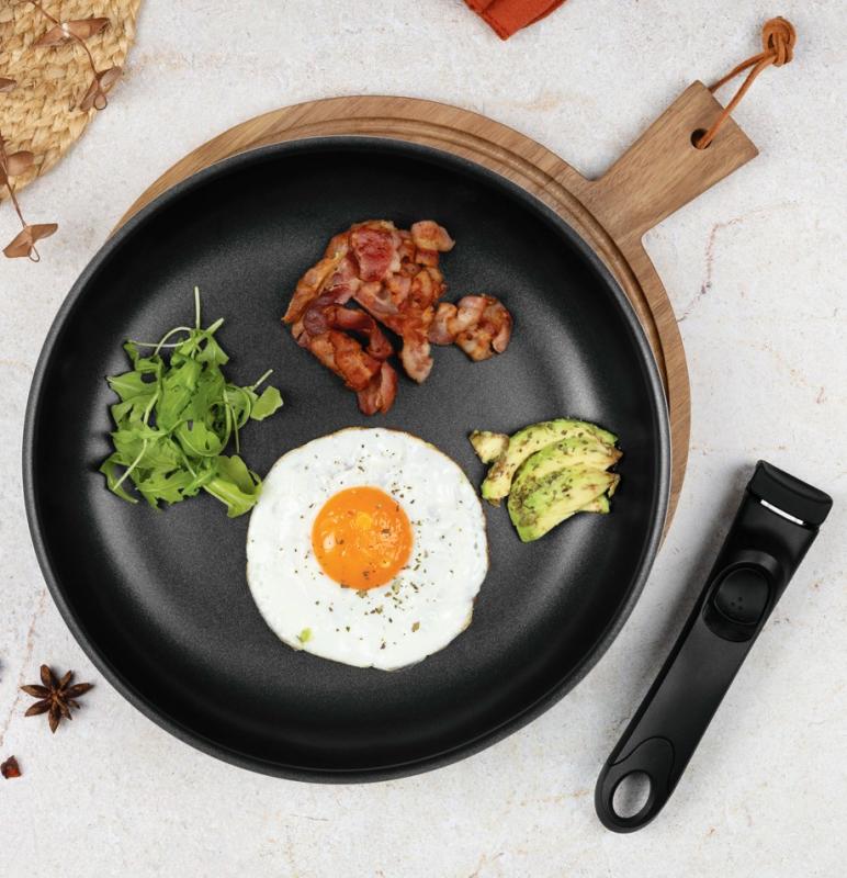 Kompletní sada nádobí s nepřilnavým titanovým povrchem, ergonomickými rukojeťmi a chytrými víky pro snadné a bezpečné vaření i úsporu místa v kuchyni. Zobrazit celý popis