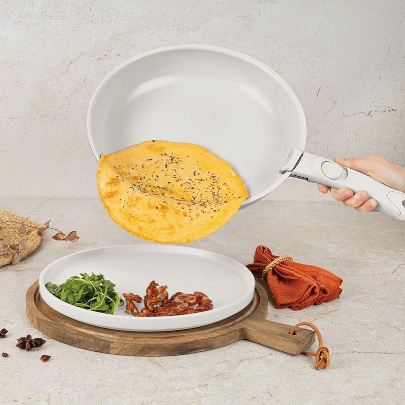 Kompletní sada nádobí s nepřilnavým titanovým povrchem a chytrými víky Click It pro pohodlné a bezpečné vaření s úsporou místa v kuchyni. Zobrazit celý popis
