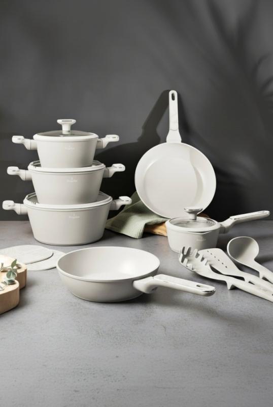 Sahara Marble Collection přináší kombinaci matného krémového povrchu a elegantního mramorového efektu. Tato sada je nejen estetickým skvostem, ale také výkonným nástrojem pro každodenní vaření.