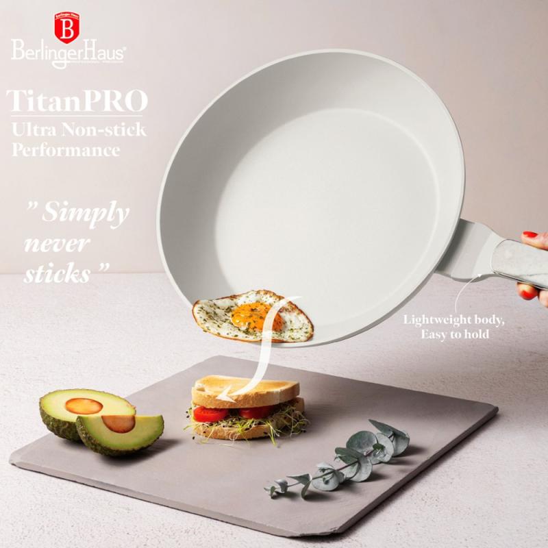 Třívrstvý nepřilnavý povrch TitanPro je odolný, bezpečný a ideální pro každodenní vaření bez připalování a zbytečného tuku. A čištění? Hračka.