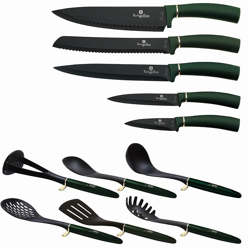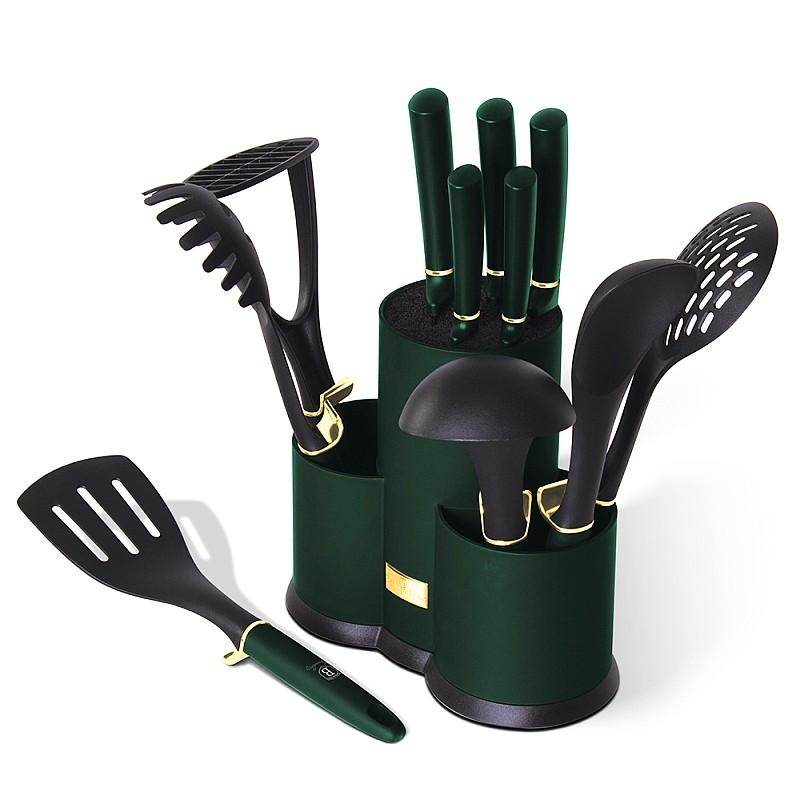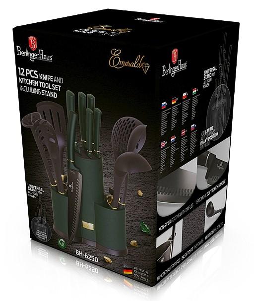 Berlingerhaus Sada nožů a kuchyňského náčiní ve stojanu 12 ks Emerald Collection