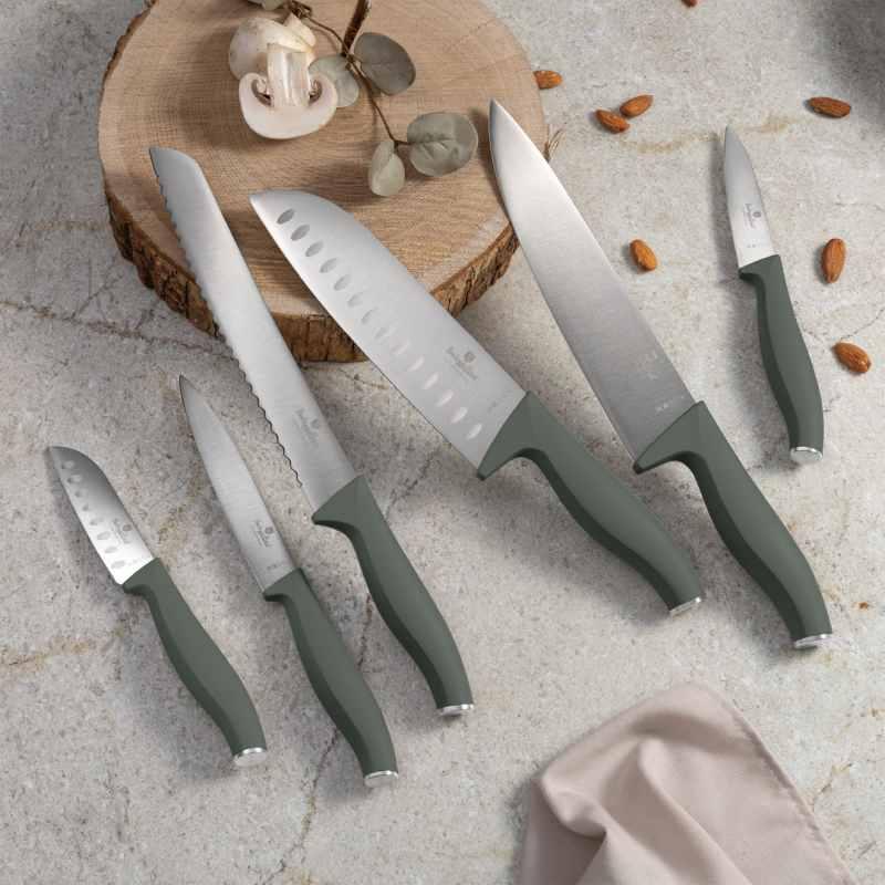 V případě včasné objednávky tohoto zboží garantujeme dodání do Vánoc.Sada šesti nožů z kvalitní nerezové oceli s ergonomickými rukojetmi a bezpečnostním chráničem prstů v elegantní matně zelené barvě. Zobrazit celý popis