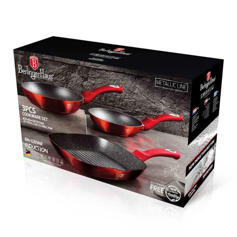 Berlingerhaus Sada pánví s mramorovým povrchem 3 ks Burgundy Metallic Line gril