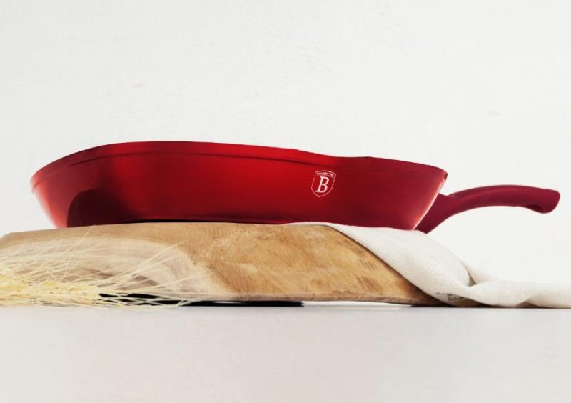 Barevné provedení v elegantní červené burgundy s metalickým leskem dodává kuchyni stylový vzhled. Ergonomické měkčené rukojeti zajistí pohodlné držení a bezpečnou manipulaci během vaření.