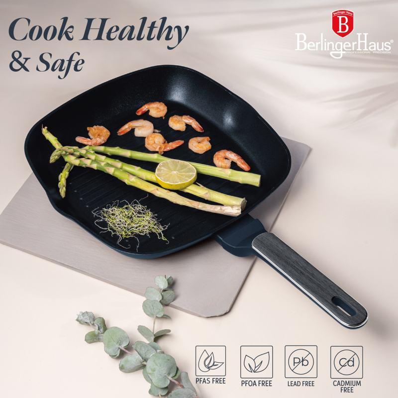 Exkluzivní sada tří pánví Deep Sea Collection od Berlingerhaus představuje spojení moderního designu a praktických vlastností, které ocení každý kuchař. Kombinace matně modré barvy a šedých dřevěných detailů přináší do vaší kuchyně stylový a zároveň funkční doplněk.