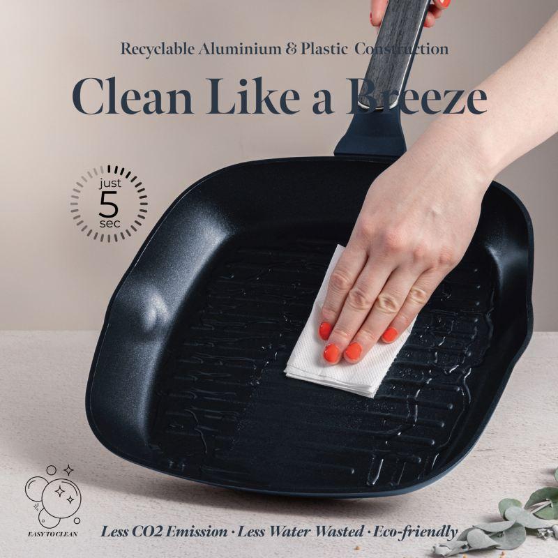 Pánve jsou vyrobené z kovaného hliníku s odolným nepřilnavým titanovým povrchem TitanPro, který umožňuje vaření s minimem tuku a bez připalování. Tento povrch je ekologicky šetrný, neobsahuje PFOA, olovo ani kadmium, což přispívá k bezpečnému a zdravému vaření.