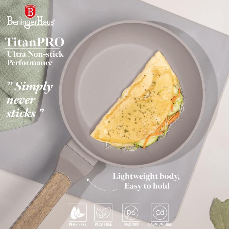 Sada pánví s titanovým povrchem 3 ks Taupe Nordic Collection BERLINGERHAUS BH-8341Objevte kouzlo moderní elegance s kolekcí Taupe Nordic Collection, která promění vaši kuchyni v oázu stylu a funkčnosti. Matný povrch v jemné šedohnědé barvě spolu se světlými dřevěnými detaily dodávají této sadě nenapodobitelný šarm a příjemný dotek přírody. Vaření bude radost, kterou si užijete každý den!