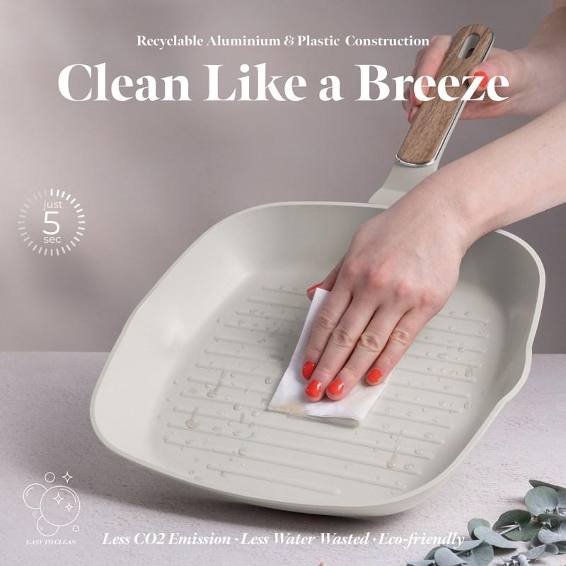 Ekologický přístup je zajištěn absencí škodlivých látek, jako jsou PFOA, olovo či kadmium, což přispívá k bezpečnosti vaření a šetrnosti k životnímu prostředí. Údržba pánví je jednoduchá díky hladkému nepřilnavému povrchu, který usnadňuje čištění.