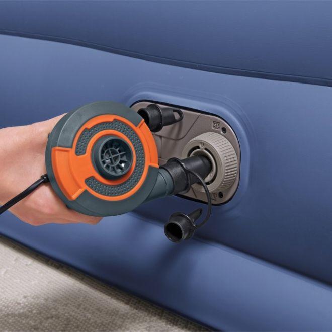 Zabudovaná elektrická pumpa, ktorá pracuje s napätím 230 V, výrazne uľahčuje proces nafukovania a vyfukovania, robí z tejto postele ideálnu voľbu pre rýchlu prípravu na prespanie hostí alebo pre pohodlný odpočinok pri kempovaní. S nosnosťou až 290 kg je táto posteľ robustná a pohodlná pre dve osoby do výšky 195 cm, poskytujúc tak pohodlný spánok bez ohľadu na prostredie.