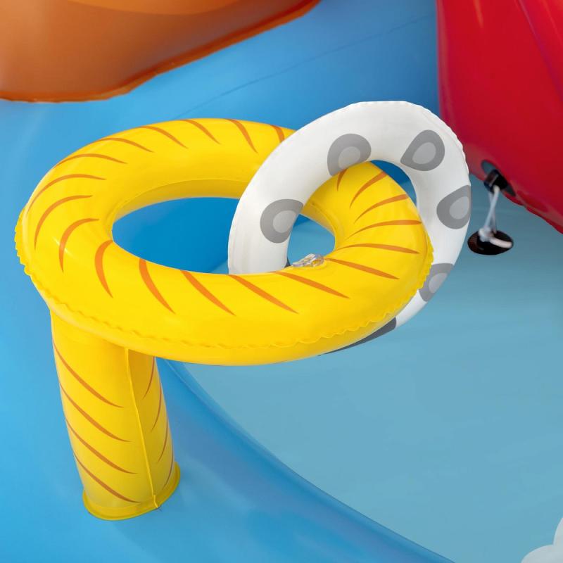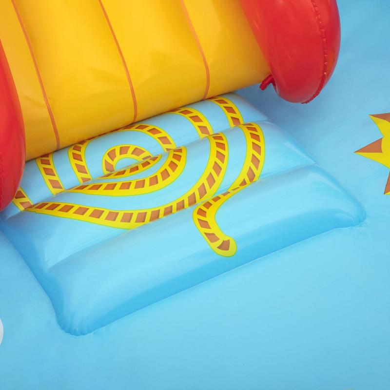 • Dno bazénu pro děti má nafukovací přistávací polštář pro větší pohodlí během využívání skluzavky. Vodní dětské centrum je vhodné pro děti od 2 let a jeho maximální nosnost je 45 kg.