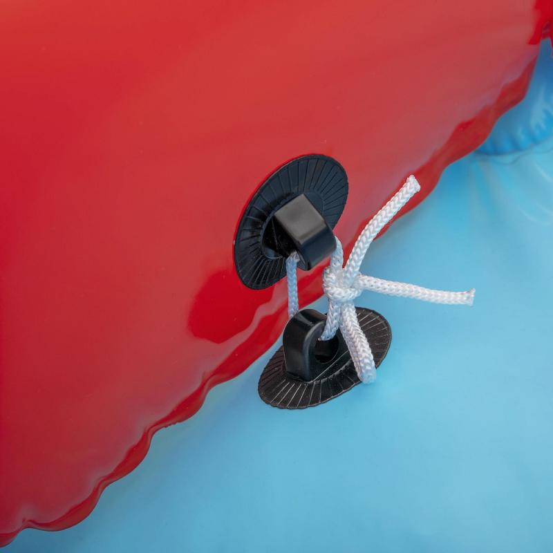 • Součástí bazénku je skluzavka, 1 hračka na jízdu na koni, 1 podkova a záplata na opravu.