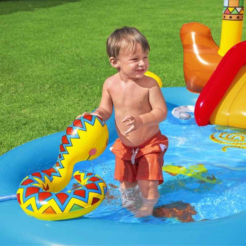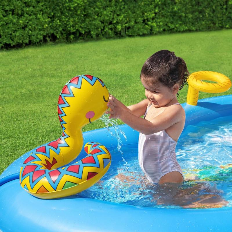 • Děti potěší také nafukovací had, který funguje jako sprcha, stačí k němu připojit zahradní hadici. Děti také mohou trénovat házení nafukovací podkovou. A dobře jim poslouží i nafukovací koník. Spoustu radosti si užijí i s nafukovacím kaktusem.