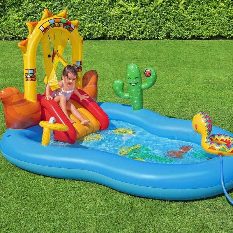 • Děti potěší také nafukovací had, který funguje jako sprcha, stačí k němu připojit zahradní hadici. Děti také mohou trénovat házení nafukovací podkovou. A dobře jim poslouží i nafukovací koník. Spoustu radosti si užijí i s nafukovacím kaktusem.