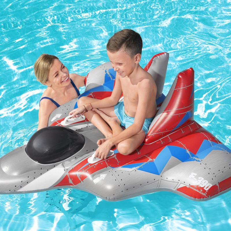 Chystáte sa k bazénu, k moru alebo k jazeru? Zaobstarajte svojim deťom štýlové a originálne nafukovacie lehátko. Toto má realistický dizajn stíhačky.Na stíhačku GALAXY GLIDER sa deti pohodlne usadia a môžu sa držať 2 pevných madiel.