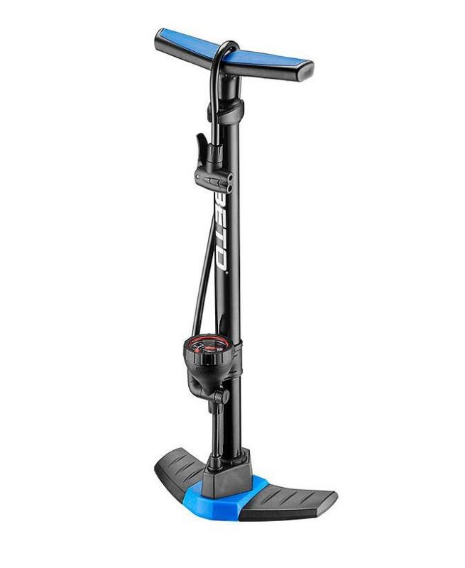Pumpa má pevnou a stabilní základnu, která zajišťuje bezpečné a pohodlné použití bez nechtěného posunu během pumpování. Průměr válce je 32 mm, což přispívá k dostatečnému objemu vzduchu při každém zdvihu, a výška pumpy je 620 mm, což umožňuje pohodlnou obsluhu vestoje.