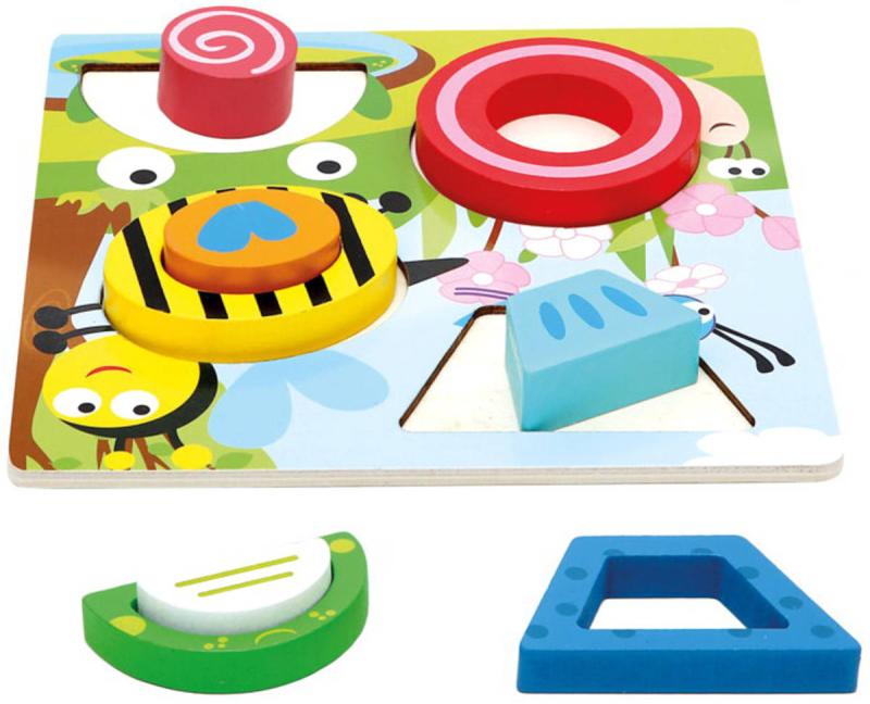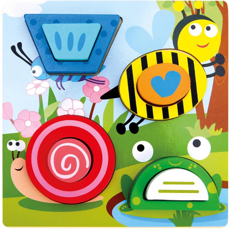 První barevné puzzle pro naše nejmenší. Děti mohou po částech skládat veselá zvířátka u rybníka. Díky robustním dřevěným dílkům se puzzle snadno uchopují a používají. Roztomile navržená skládačka hravou formou podporuje rozpoznávání a pojmenovávání barev a zvířat. Trénuje jemnou motoriku a schopnost rozlišovat velikosti a tvary. Při hře si děti mohou procvičovat koordinaci rukou a zlepšovat praktickou inteligenci a kognitivní dovednosti.