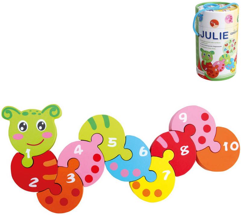 Bino DŘEVO Skládačka s čísly žížala Julie 10 dílků (dřevěná hračka)
