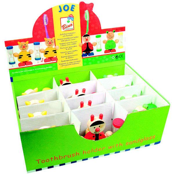 Bino DŘEVO Stojánek na kartáček přesýpací (dřevěná hračka)