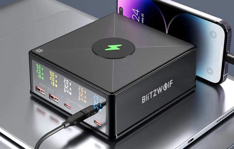 BlitzWolf 868H podporuje také bezdrátové nabíjení s výkonem 15 W, které je ideální pro smartphony a další zařízení podporující tuto technologii. Díky tomu můžete pohodlně obnovovat energii bez nutnosti dalších kabelů.