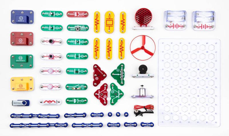Kreativní elektronická stavebnice, která rozvine technické myšlení dětí. Vaše děti mohou postavit stovky projektů podle manuálu nebo si vymyslet své vlastní. Součástky je možné bez problému vzájemně kombinovat. Navíc jsou barevně rozlišené, což usnadní orientaci a finální skládání. Vše můžete snadno kombinovat s dalšími Boffin stavebnicemi. Základem všech projektů je deska, na kterou se snadno nacvakávají jednotlivé součástky. Skládání a rozkládání dílků je jednoduché. V manuálu je popsáno, co by měl daný projekt po dokončení dělat, co od něj můžete očekávat, díky tomu si pak můžete rychle zkontrolovat, že vše funguje tak, jak má. Je to hra, která jistě potěší malé kutily a vynálezce. Navíc lze stavebnici připojit k počítači.