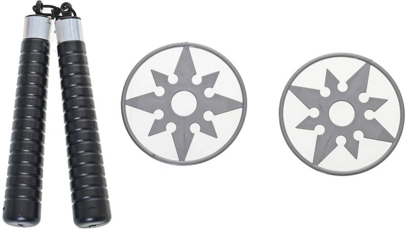 Obsah balení: nunchaku, hvězdice 2x, dýka, samurajský meč 2x, pouzdro na meč 2x