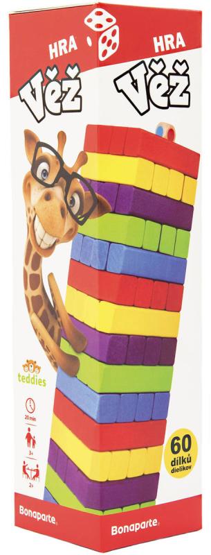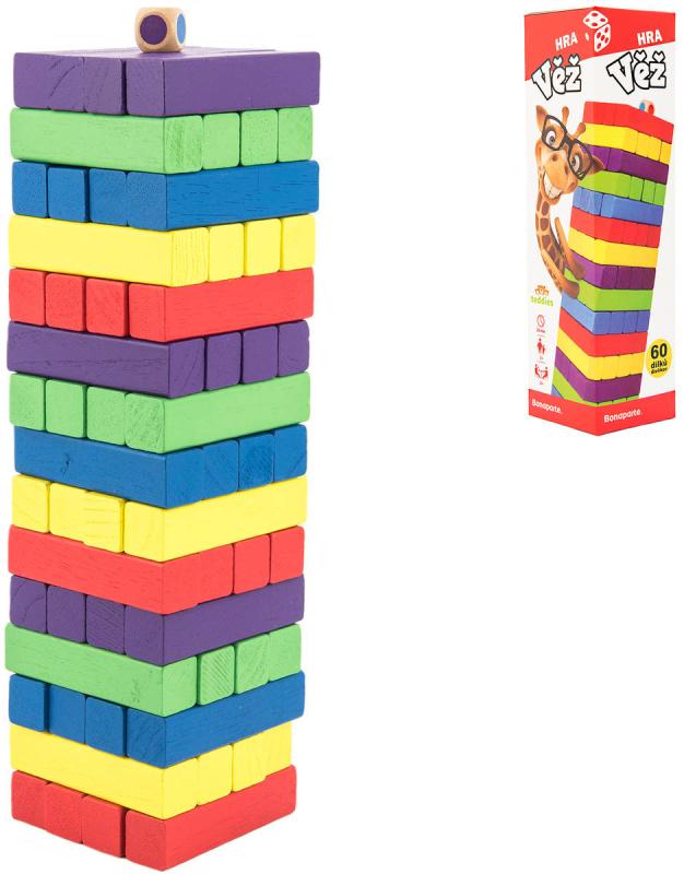 Bonaparte DŘEVO Hra věž Jenga barevná 60 dílků (společenská hra)