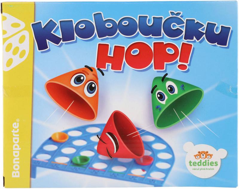 ***Kloboučku, hop! je společenská hra pro libovolný počet hráčů. Každý hráč střílí odpalovací rampičkou směrem k hernímu plánu a to vždy čtyřikrát, pokaždé kloboučkem jiné barvy. Pokud klobouček zapadne do otvoru v hrací desce, hráč si započítá hodnotu odpovídající danému pruhu. Hodnota bodů se zdvojnásobuje, jestliže klobouček zapadne do otvoru v pruhu označeném stejnou barvou, jako je barva kloboučku. Vyhrává hráč s nejvyšším počtem bodů. Vzdálenost rampičky od hracího pole závisí na schopnostech hráčů a jejich dohodě.