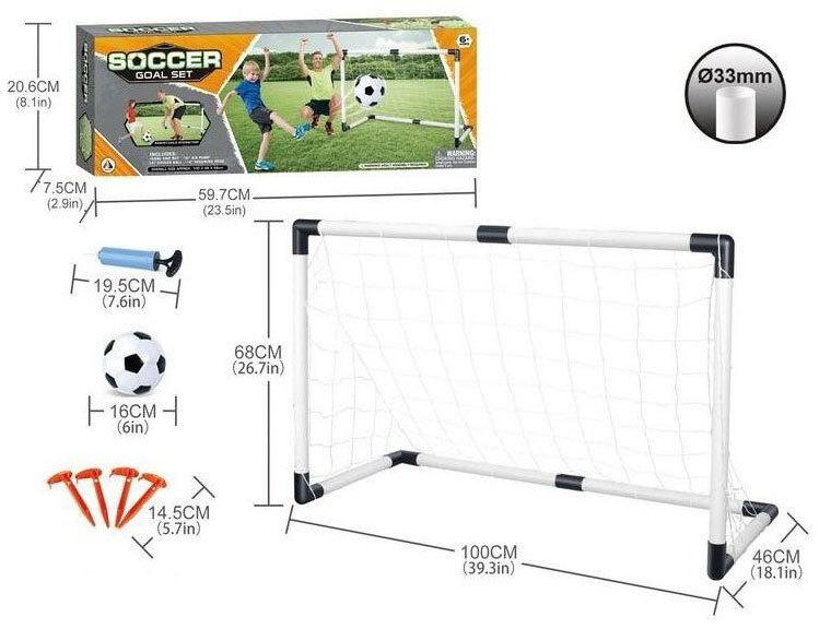 Obsah balení: brána v rozloženém stavu, balon, pumpička